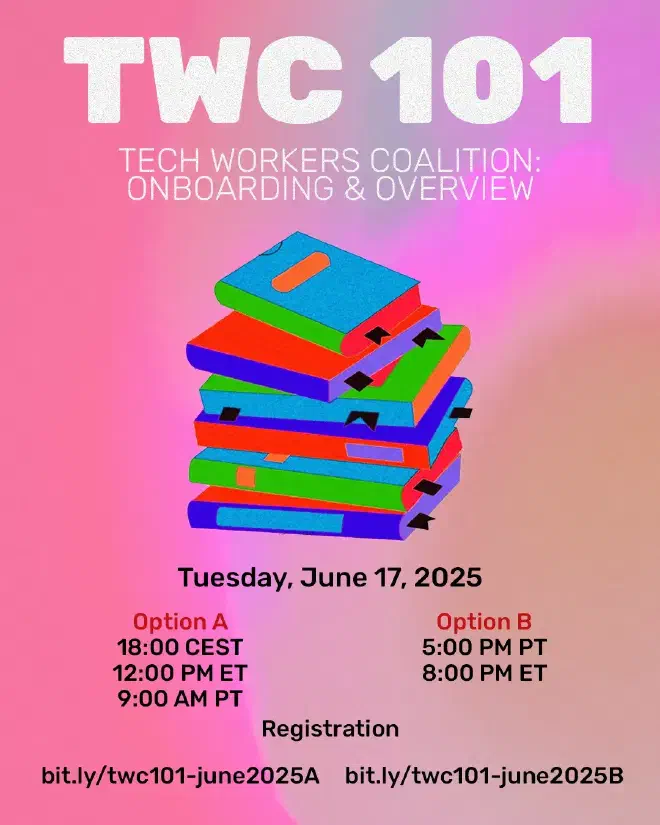 Would you like to learn more about the Tech Workers Coalition? Want to get more involved? Join the Tech Workers Coalition onboarding call on 17 June!