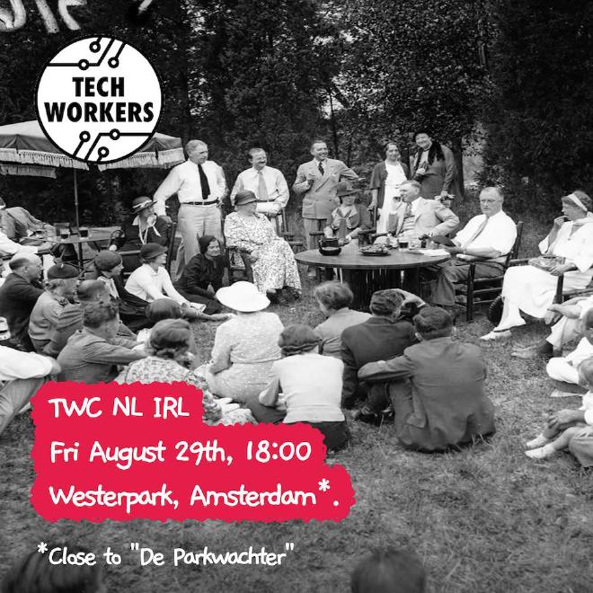 Come and hang out in the Westerpark with other tech workers! Happening on Friday 29 August, from 18.00 onwards. Meetup near statue De Parkwachter.